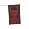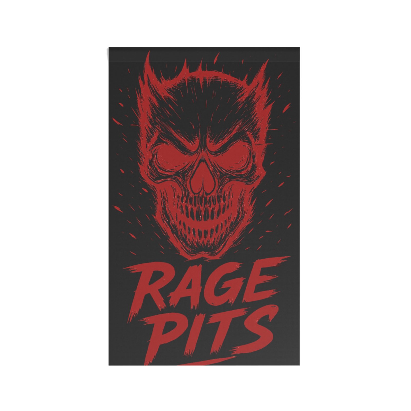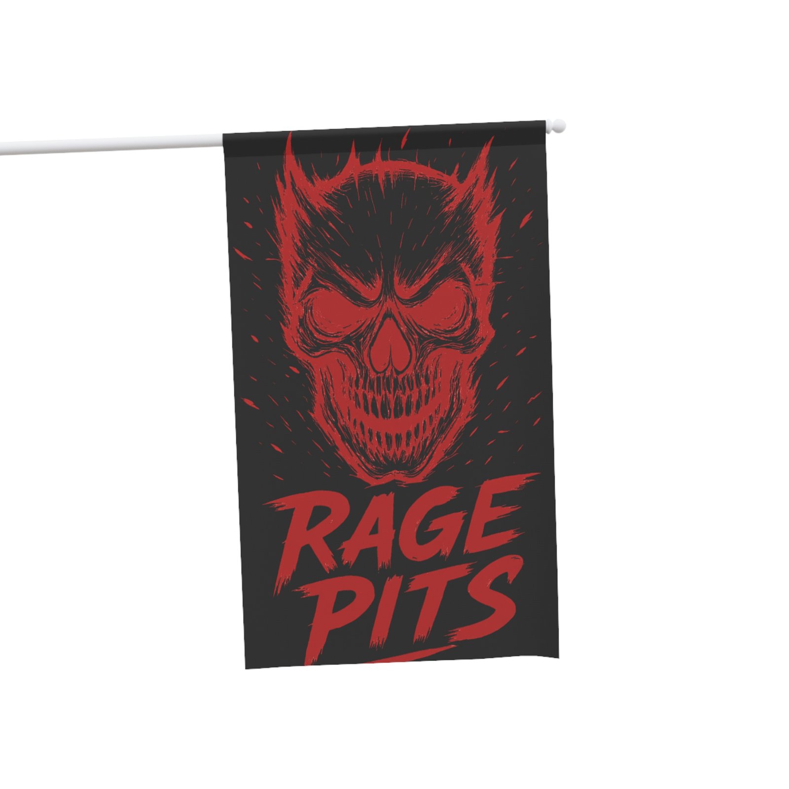 Bring bold, in-your-face energy to your porch or game-room wall with this striking vertical house banner. A snarling skull in fiery red looms over jagged lettering that reads “RAGE PITS,” creating a raw, underground vibe that grabs attention from the street. The sturdy polyester holds vibrant, fade-resistant color through sun and storms, and the top sleeve slips over a standard flagpole or stand for instant display. Place it outside during rally nights, use it to mark your music rehearsal space, or hang it inside to set the tone for high-energy gatherings—this banner announces attitude before anyone steps inside.