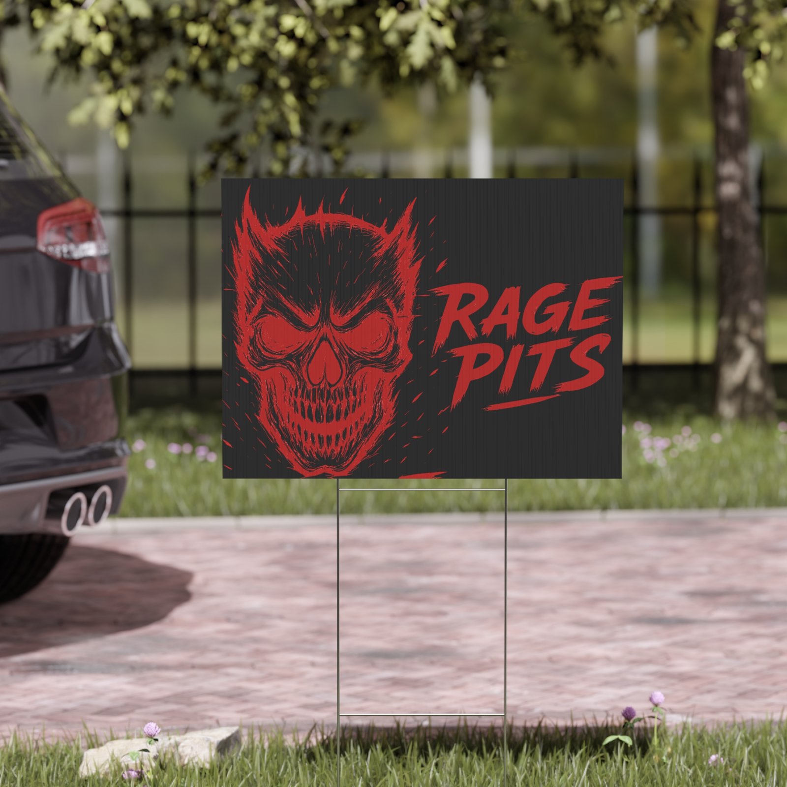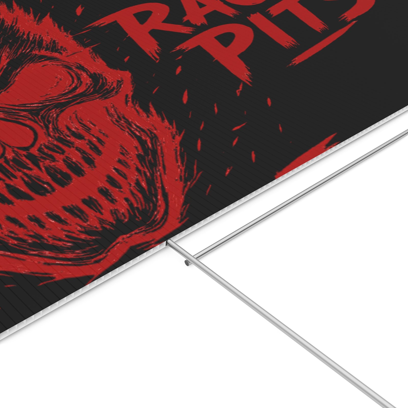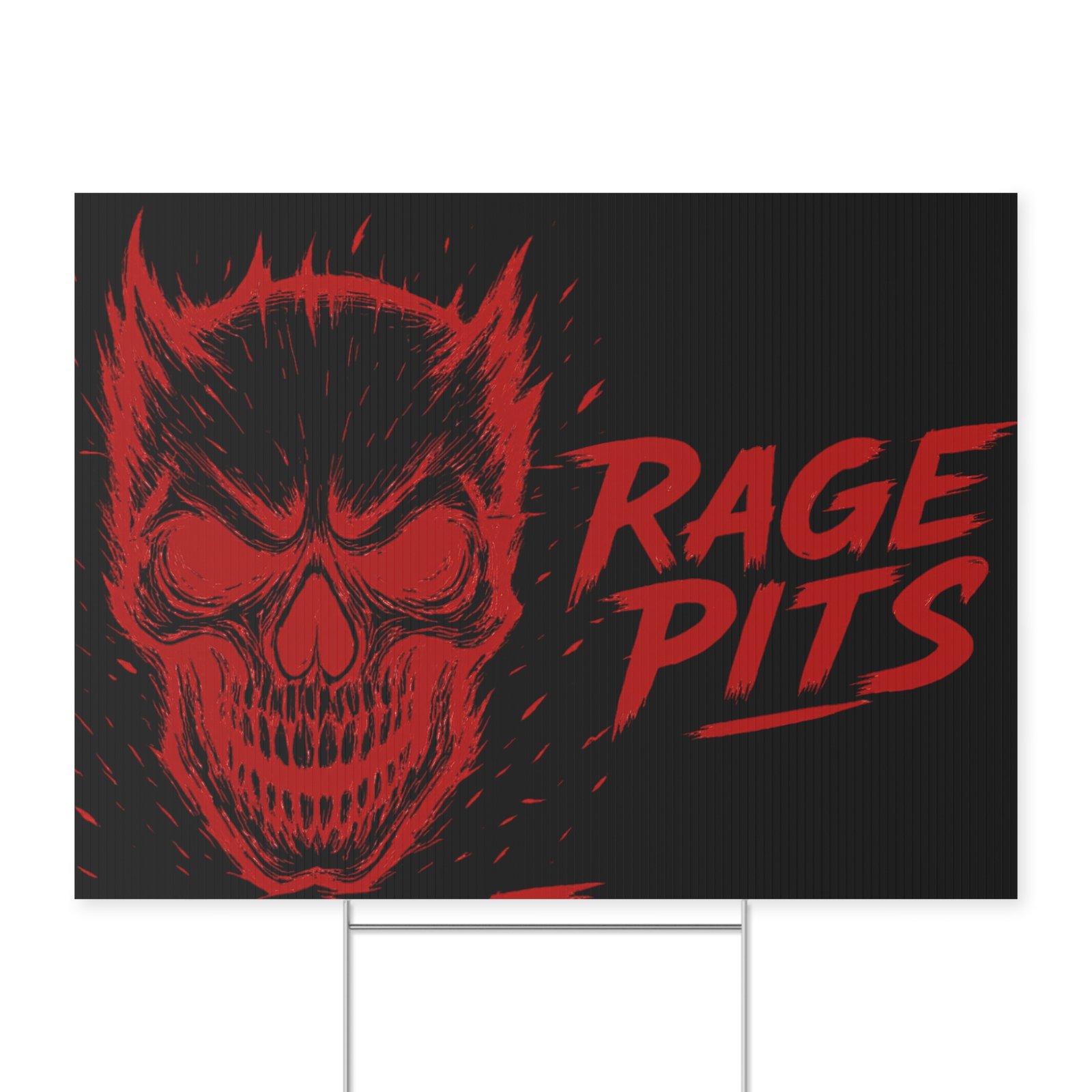 Bold, gritty, and impossible to ignore — this 18″ x 24″ yard sign broadcasts attitude with razor-sharp colors and a menacing skull motif. Printed on sturdy corrugated plastic, the design appears on both sides so the message reads loud and clear from any angle. Drop the included metal H-stand into the ground and your sign stays upright through gusts and gatherings. Great for marking event zones, band merch displays, practice pits, or simply staking your claim outside a rehearsal space. It feels rough, loud, and unapologetic — like a night where everything ramps up and the speakers don’t stop.