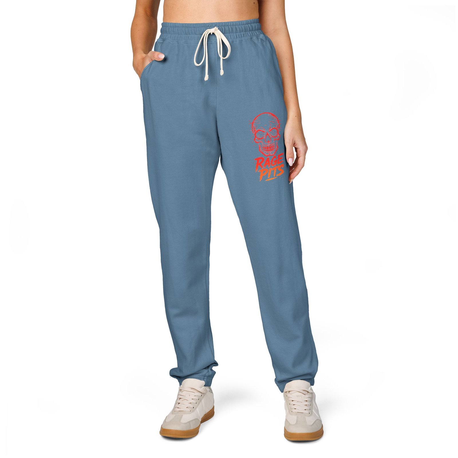 These garment-dyed fleece sweatpants bring a lived-in, laid-back vibe to everyday wear. The relaxed fit and medium-weight ring-spun cotton feel soft against the skin while the washed-down color and subtle texture age naturally with each wash. A low-profile graphic at the thigh adds a bit of edge without shouting — wear them lounging at home, layering for a roadside coffee stop, or pairing with a worn-in tee for late-night drives. They drape casually, move with you, and settle into your rotation as an easy, comfortable staple.