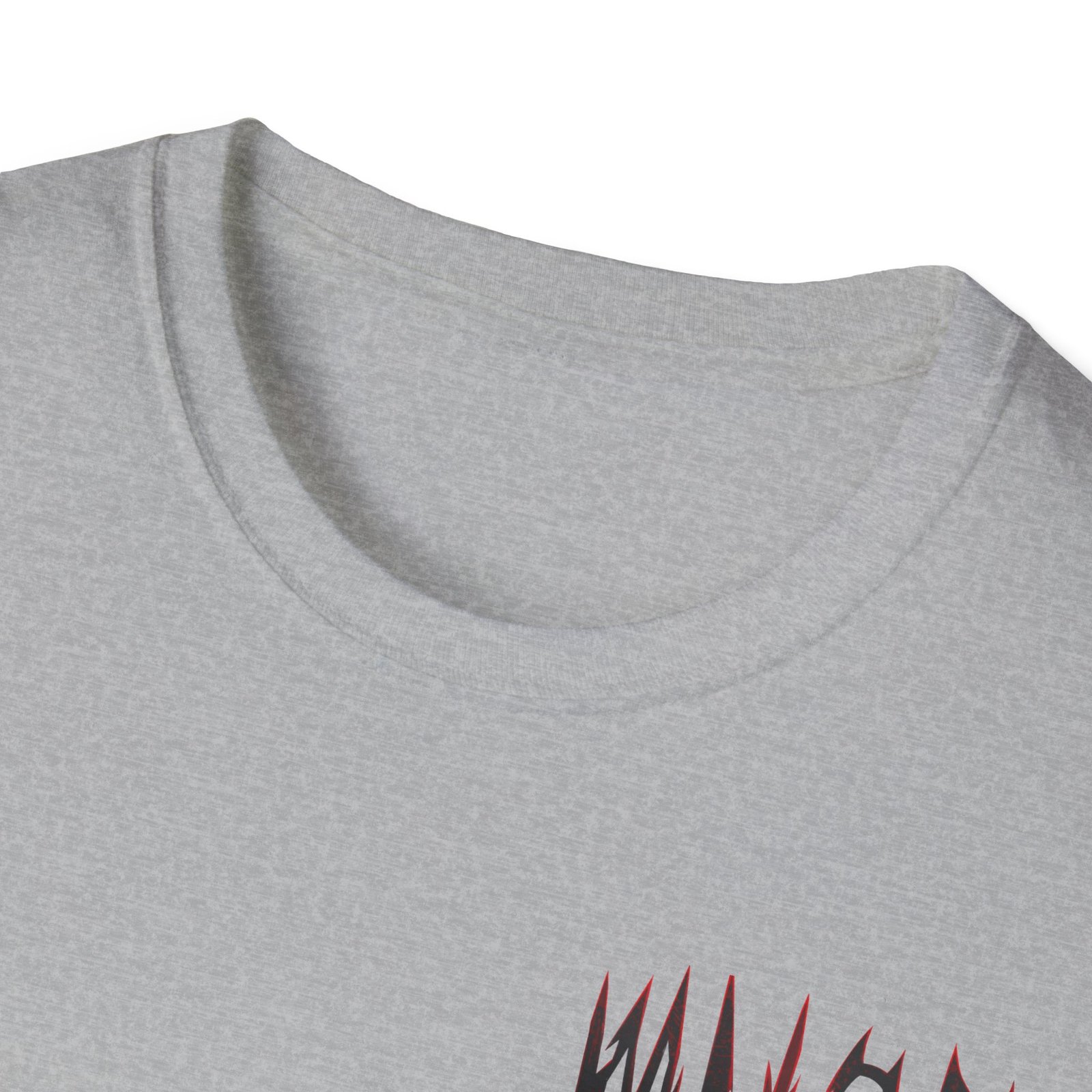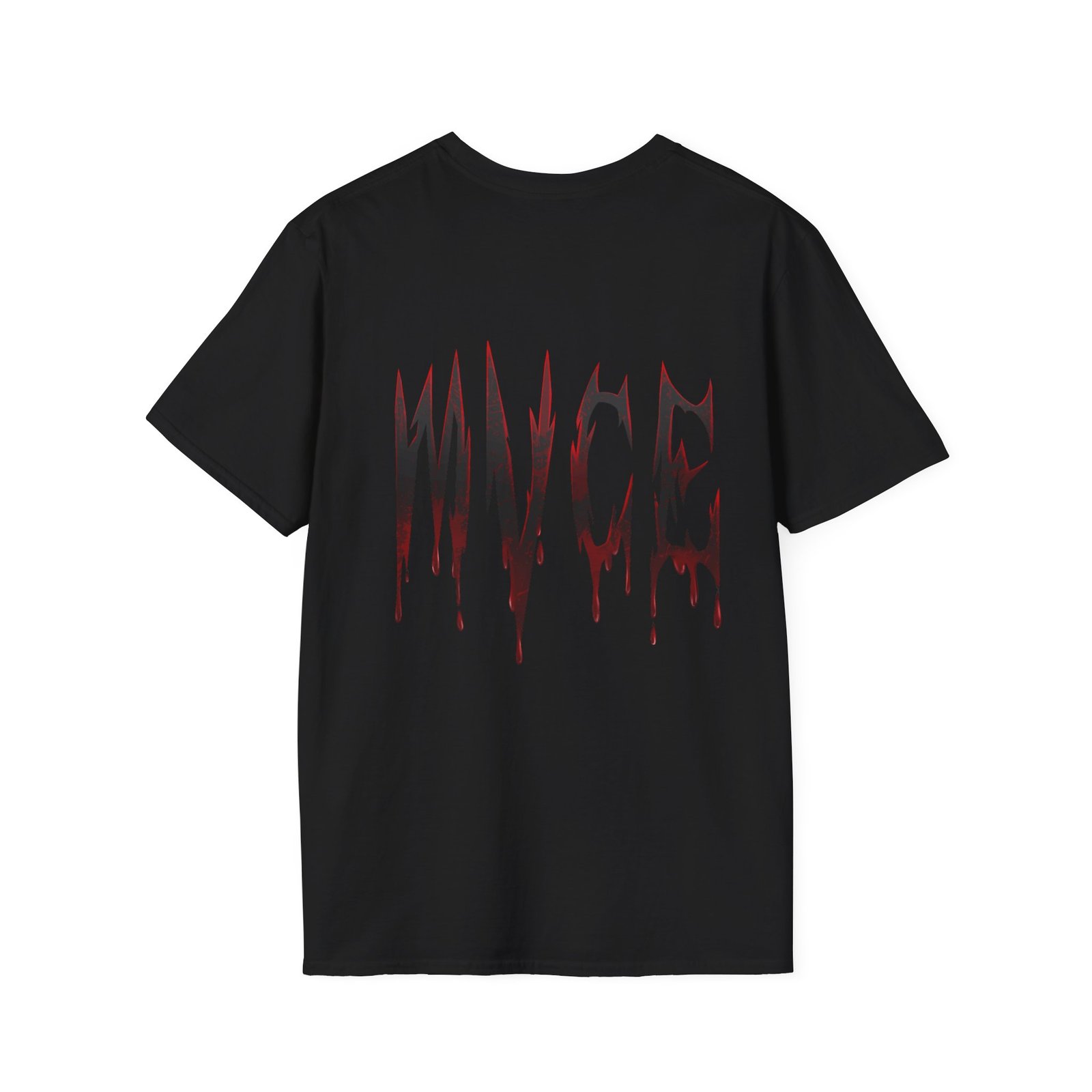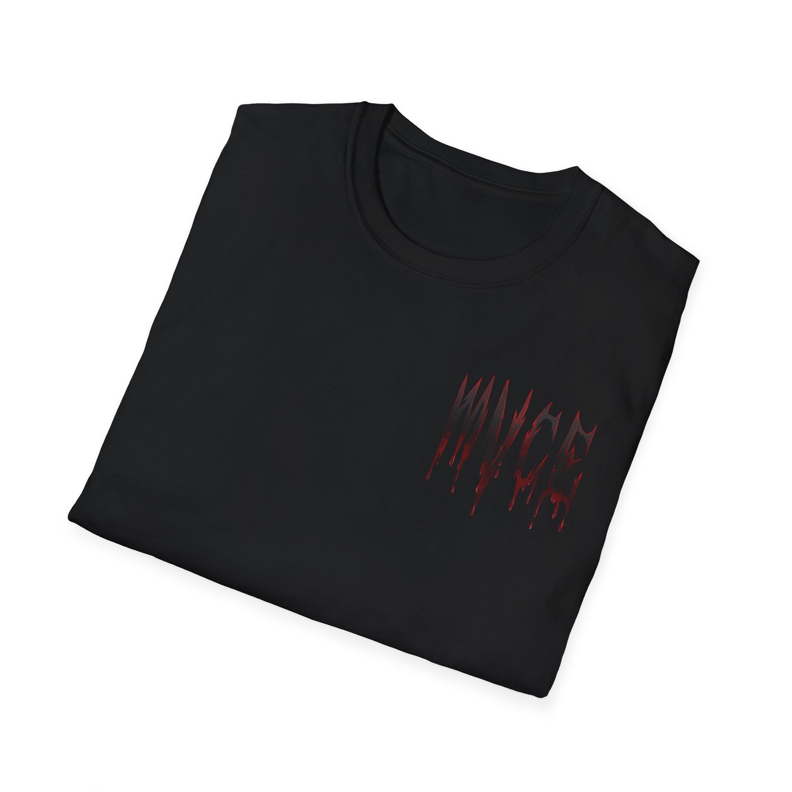 This lightweight cotton tee carries a dark, edgy vibe — raw and unapologetic. A small, razor-drip logo sits over the heart while a larger, jagged version splashes across the back like fresh paint or a scar. The soft ring-spun fabric and classic crew neck make it easy to wear every day, while distressed, blood-like lettering gives your outfit a statement without shouting. Wear it layered under a worn denim jacket or solo with black jeans; it’s for people who lean into bold contrasts and night-street energy.